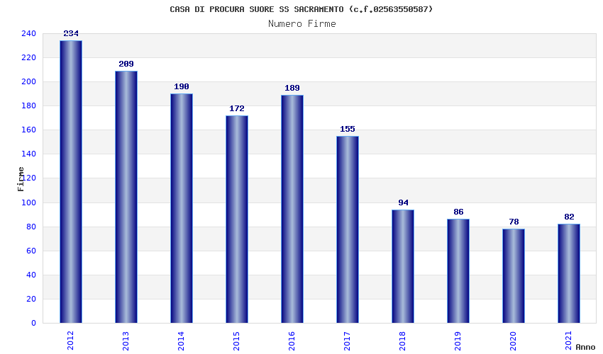 | Anno | Firme | Importi | Media | Naz. | Reg. | Prov. | Comu. |
