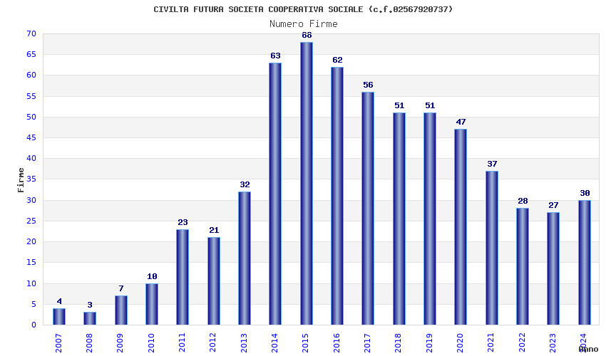 | Anno | Firme | Importi | Media | Naz. | Reg. | Prov. | Comu. |