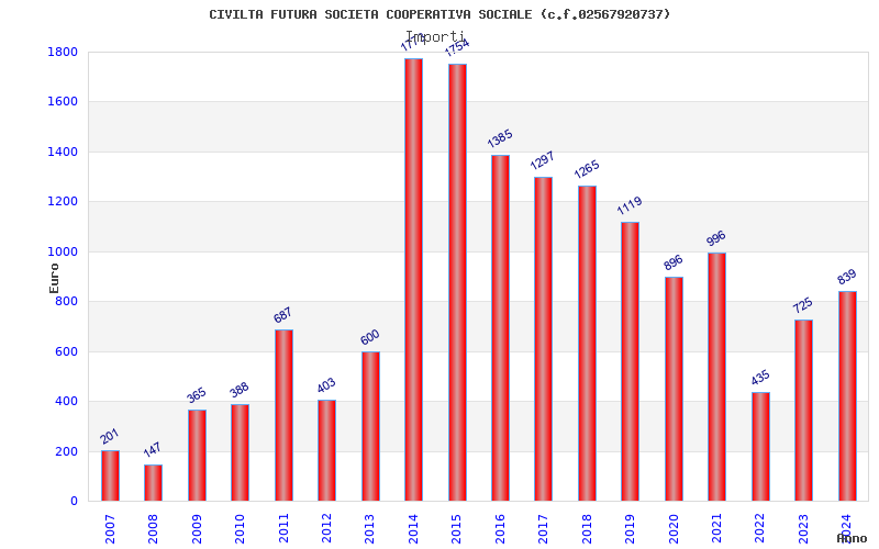 | 2016 | 62 | 1.384,68 | 22,33 | 28.133 | 1.343 | 174 | 7 |