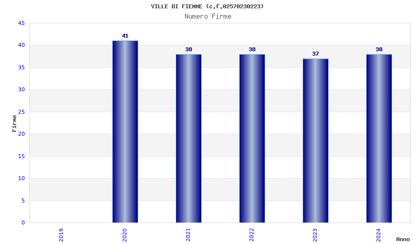 | Anno | Firme | Importi | Media | Naz. | Reg. | Prov. | Comu. |
