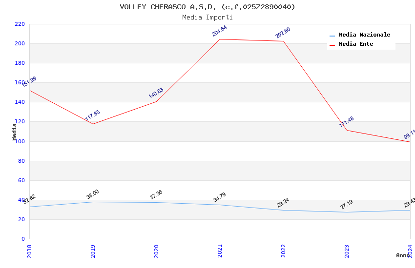 | Anno | Firme | Importi | Media | Naz. | Reg. | Prov. | Comu. |