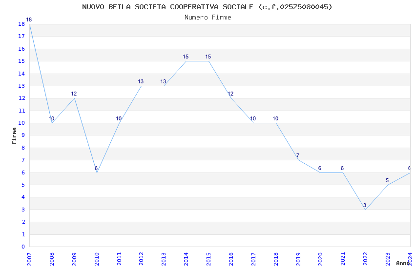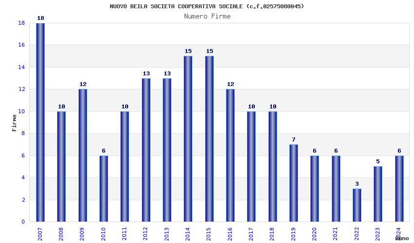 | Anno | Firme | Importi | Media | Naz. | Reg. | Prov. | Comu. |