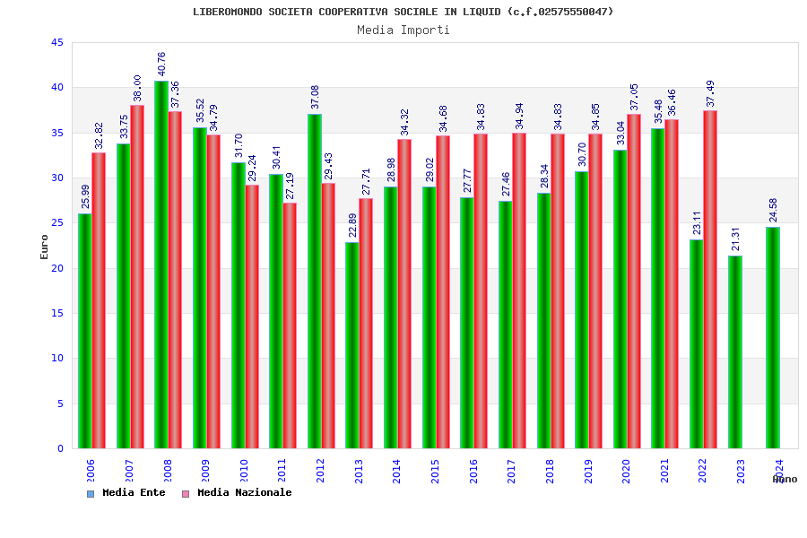 | Anno | Firme | Importi | Media | Naz. | Reg. | Prov. | Comu. |