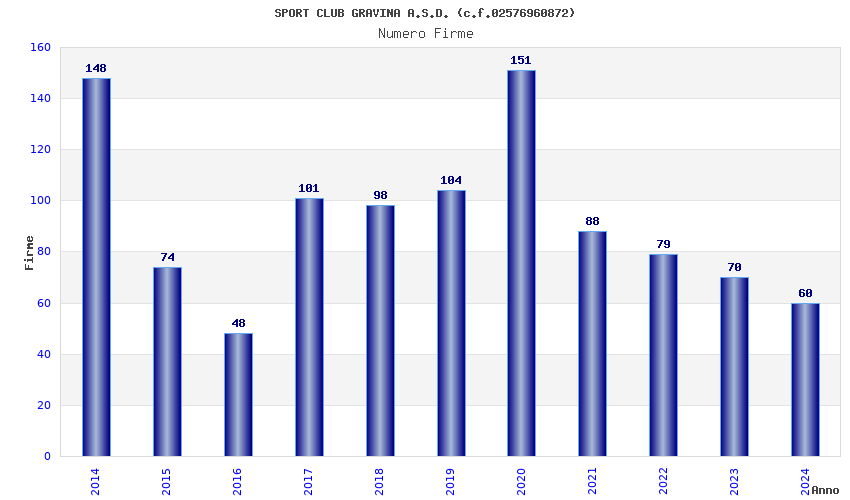 | 2020 | 151 | 5.676,97 | 37,60 | 9.988 | 539 | 104 | 3 |