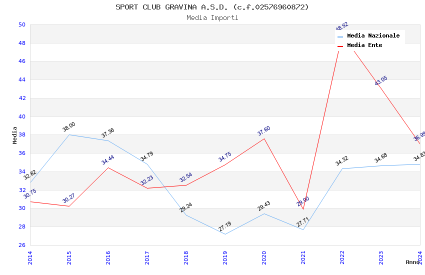 | Anno | Firme | Importi | Media | Naz. | Reg. | Prov. | Comu. |