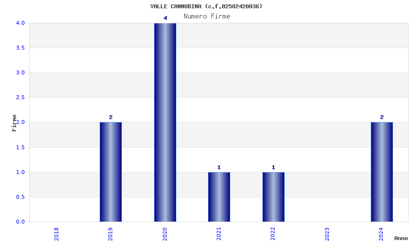 | Anno | Firme | Importi | Media | Naz. | Reg. | Prov. | Comu. |