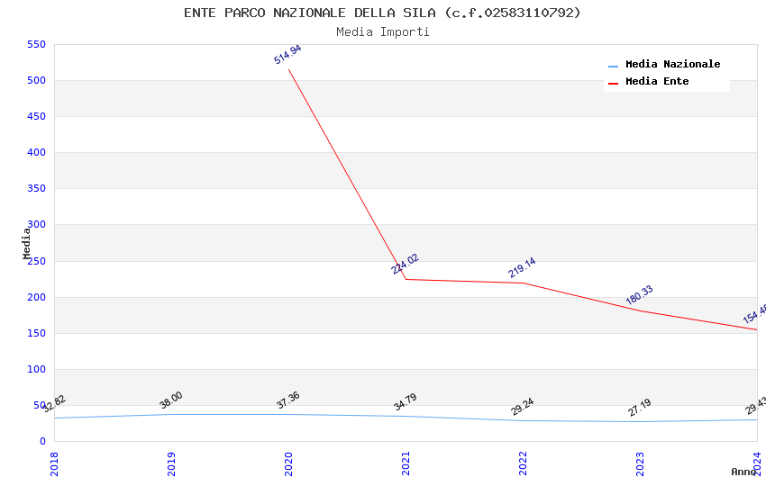 | Anno | Firme | Importi | Media | Naz. | Reg. | Prov. | Comu. |