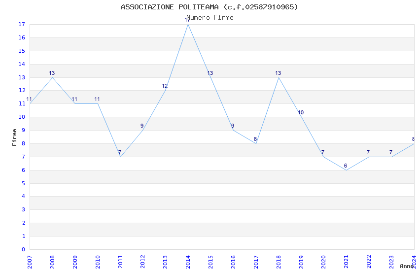 | 2014 | 17 | 273,12 | 16,07 | 43.555 | 9.009 | 586 | 122 |