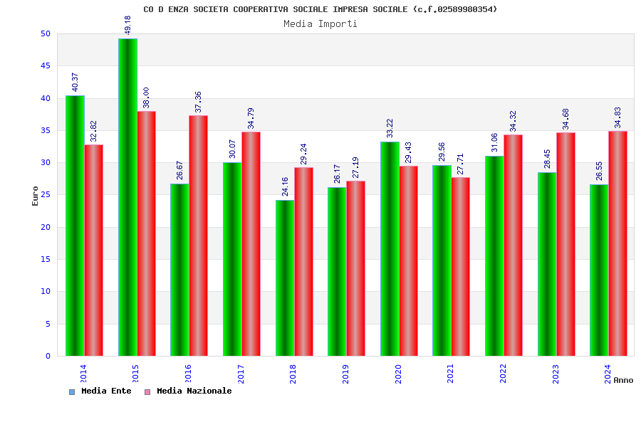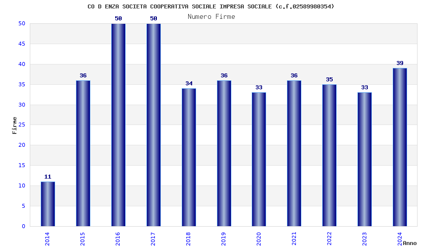 | Anno | Firme | Importi | Media | Naz. | Reg. | Prov. | Comu. |