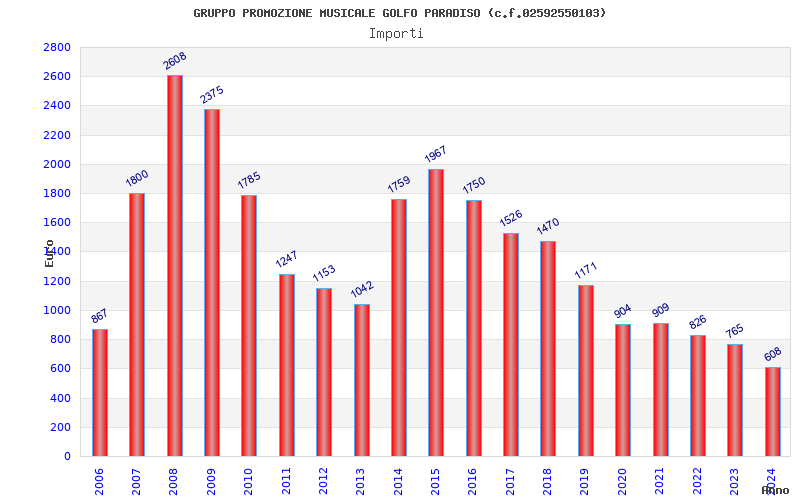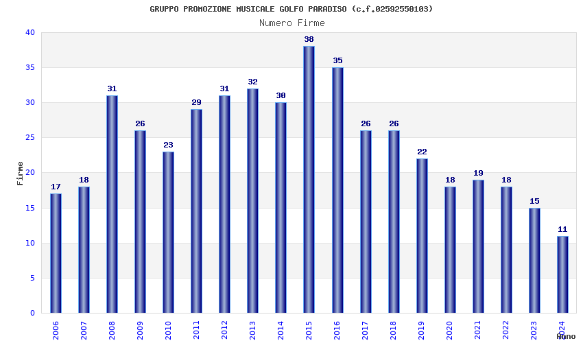 | Anno | Firme | Importi | Media | Naz. | Reg. | Prov. | Comu. |