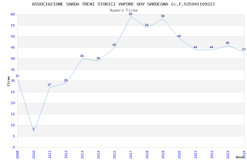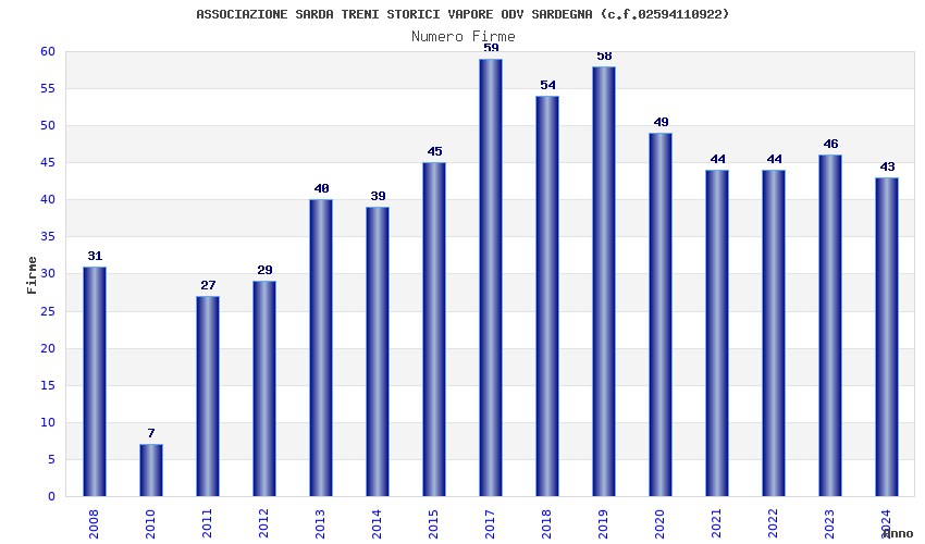 | 2017 | 59 | 2.571,71 | 43,59 | 19.703 | 382 | 168 | 108 |