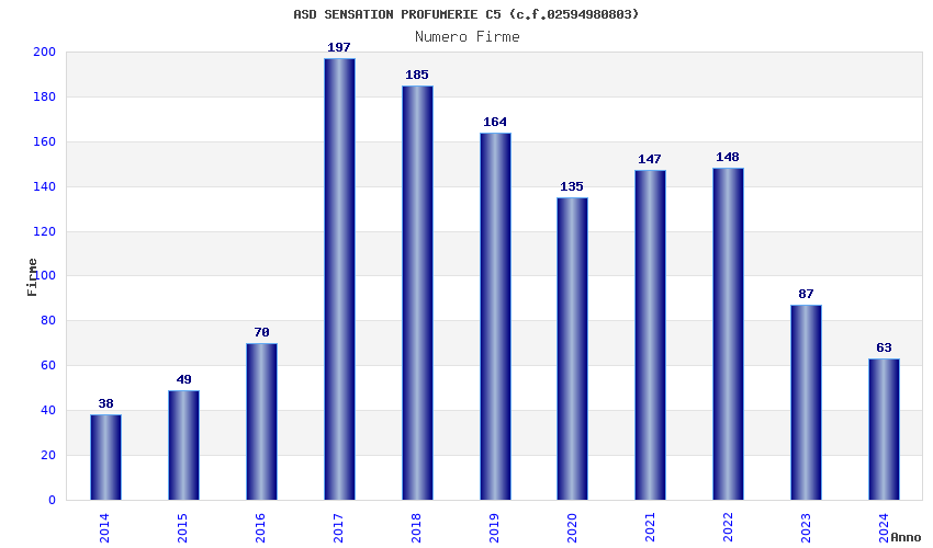 | Anno | Firme | Importi | Media | Naz. | Reg. | Prov. | Comu. |