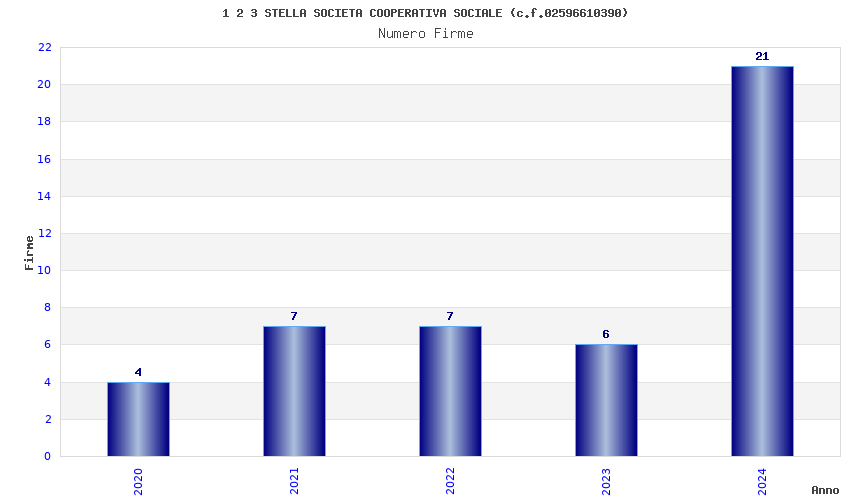 | Anno | Firme | Importi | Media | Naz. | Reg. | Prov. | Comu. |