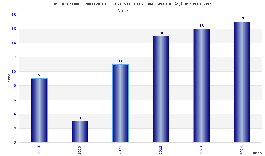 | Anno | Firme | Importi | Media | Naz. | Reg. | Prov. | Comu. |