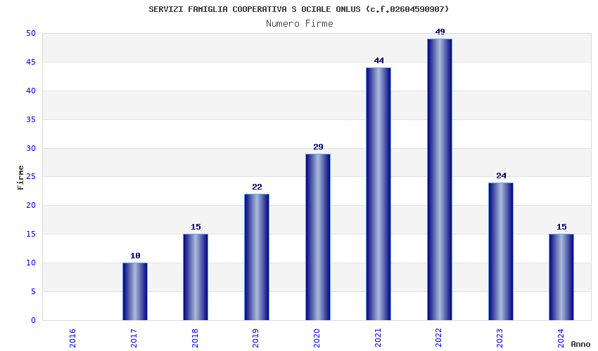 | Anno | Firme | Importi | Media | Naz. | Reg. | Prov. | Comu. |