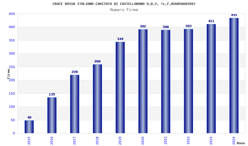 | Anno | Firme | Importi | Media | Naz. | Reg. | Prov. | Comu. |