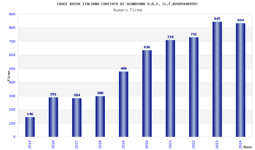 | Anno | Firme | Importi | Media | Naz. | Reg. | Prov. | Comu. |