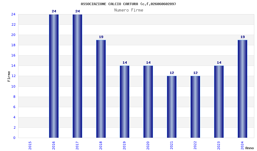 | 2017 | 24 | 591,47 | 24,64 | 41.874 | 3.884 | 828 | 6 |