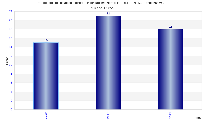 | Anno | Firme | Importi | Media | Naz. | Reg. | Prov. | Comu. |