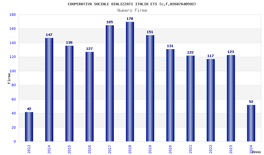 | Anno | Firme | Importi | Media | Naz. | Reg. | Prov. | Comu. |