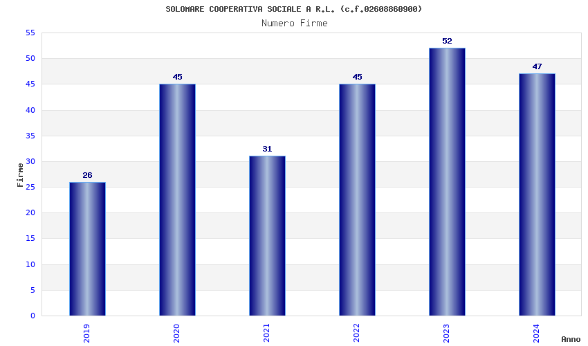 | Anno | Firme | Importi | Media | Naz. | Reg. | Prov. | Comu. |