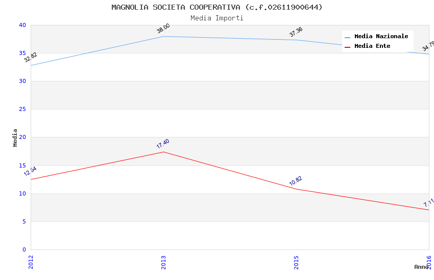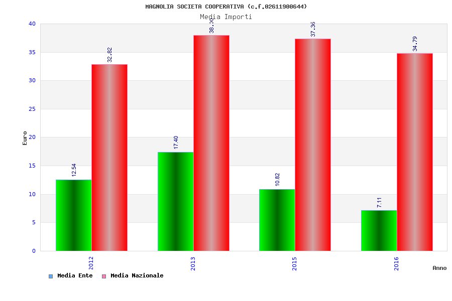 | Anno | Firme | Importi | Media | Naz. | Reg. | Prov. | Comu. |