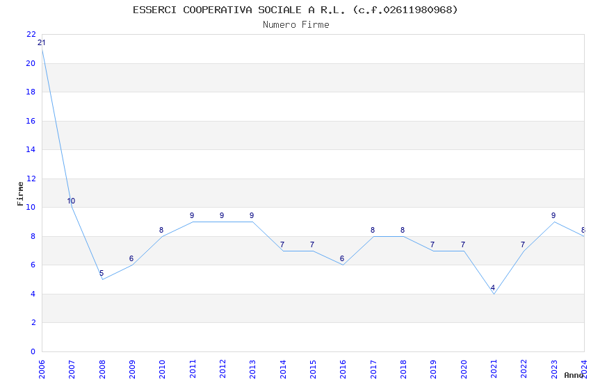 | 2006 | 21 | 809,94 | 38,57 | 20.966 | 5.223 | 309 | 15 |