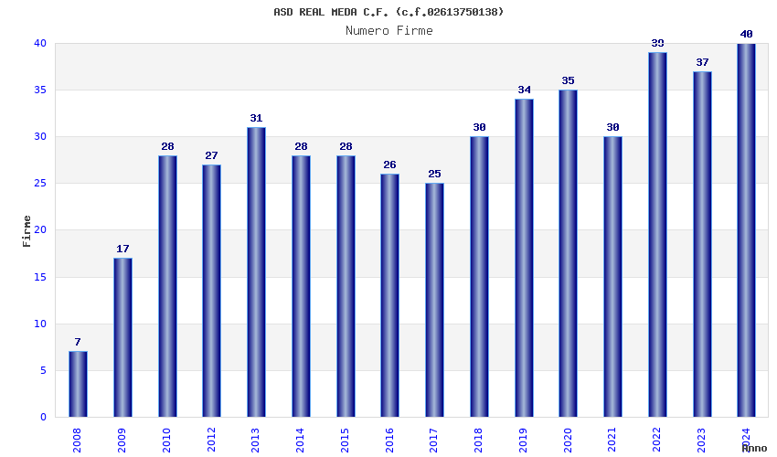 | 2017 | 25 | 781,96 | 31,28 | 38.107 | 8.111 | 571 | 12 |