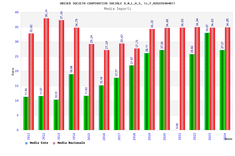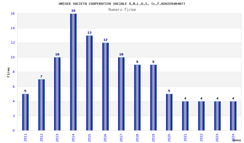 | Anno | Firme | Importi | Media | Naz. | Reg. | Prov. | Comu. |