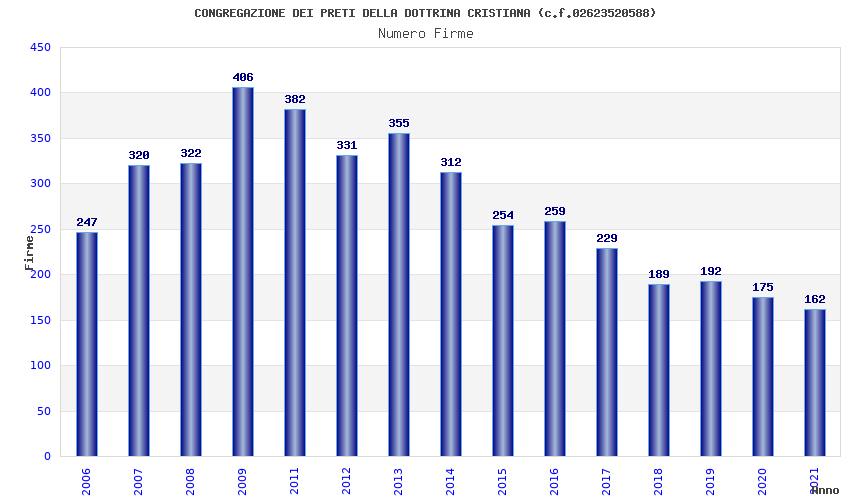 | Anno | Firme | Importi | Media | Naz. | Reg. | Prov. | Comu. |