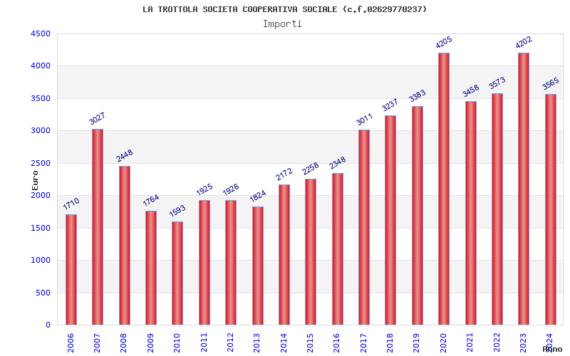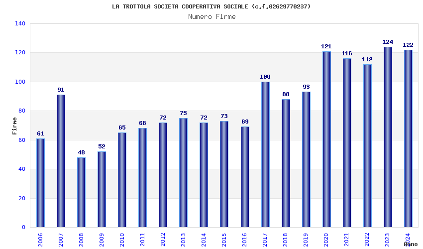 | Anno | Firme | Importi | Media | Naz. | Reg. | Prov. | Comu. |