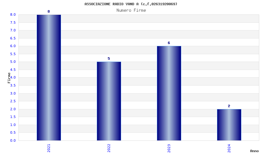 | Anno | Firme | Importi | Media | Naz. | Reg. | Prov. | Comu. |