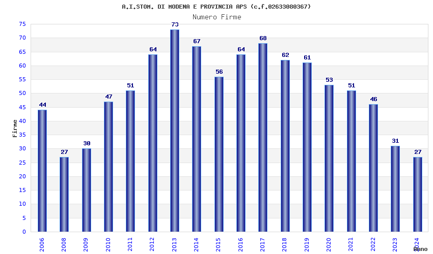 | 2014 | 67 | 1.507,67 | 22,50 | 25.558 | 2.271 | 312 | 119 |
