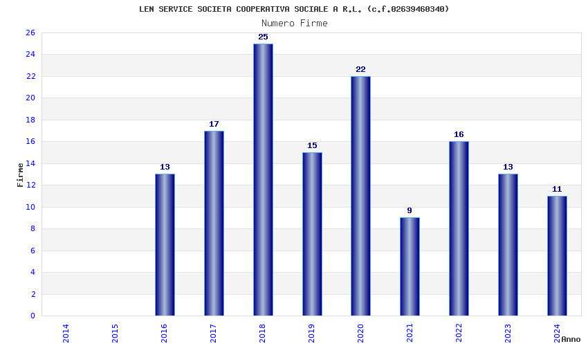 | Anno | Firme | Importi | Media | Naz. | Reg. | Prov. | Comu. |
