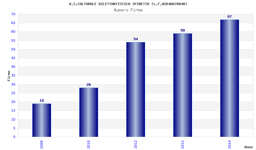 | Anno | Firme | Importi | Media | Naz. | Reg. | Prov. | Comu. |