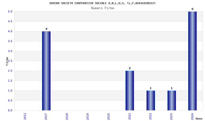 | Anno | Firme | Importi | Media | Naz. | Reg. | Prov. | Comu. |
