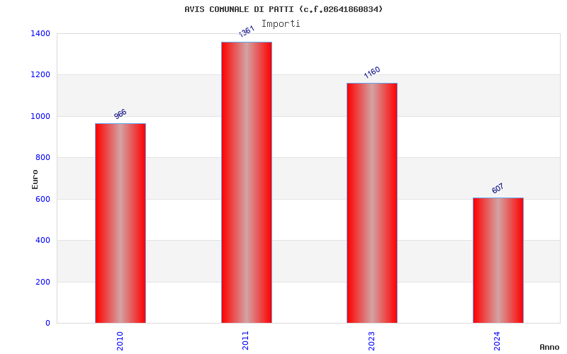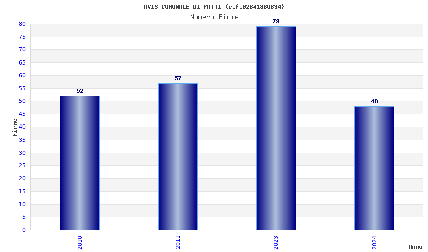 | Anno | Firme | Importi | Media | Naz. | Reg. | Prov. | Comu. |