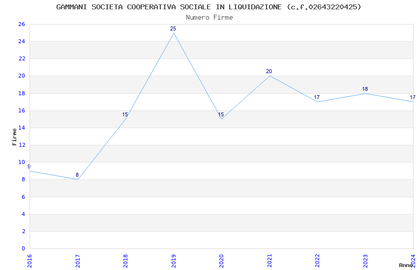 | 2019 | 25 | 616,18 | 24,65 | 43.083 | 1.138 | 436 | 4 |