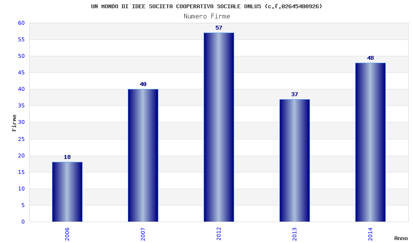 | Anno | Firme | Importi | Media | Naz. | Reg. | Prov. | Comu. |