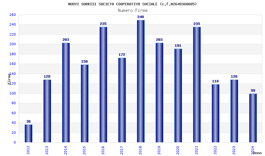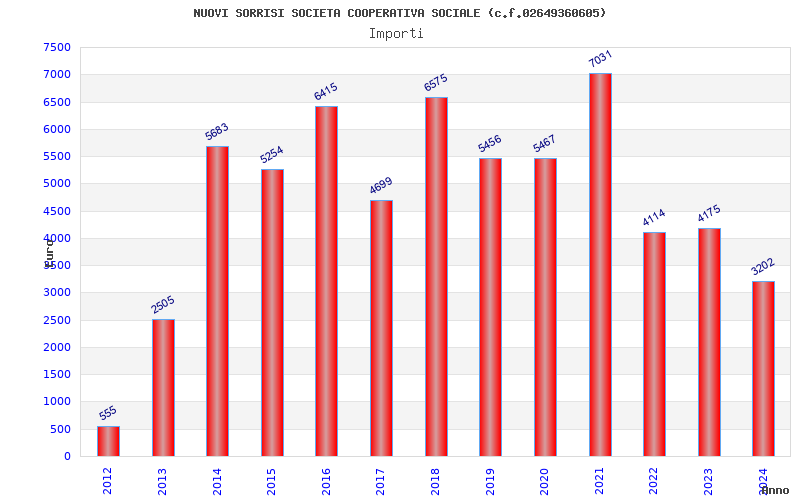 | Anno | Firme | Importi | Media | Naz. | Reg. | Prov. | Comu. |
