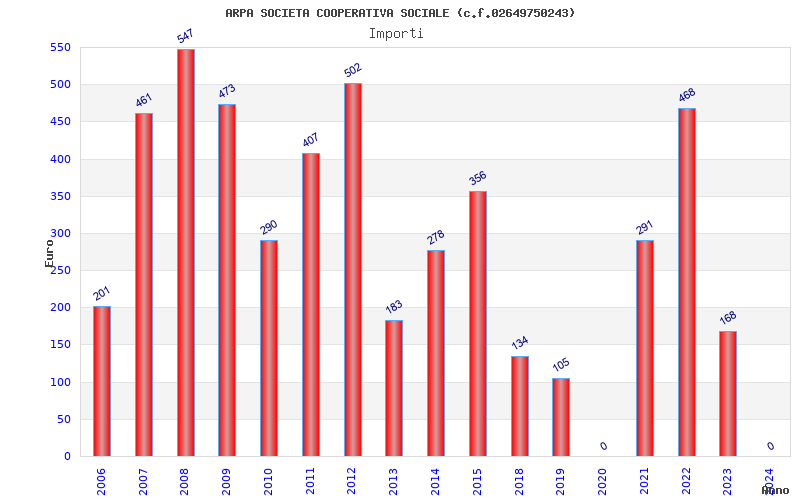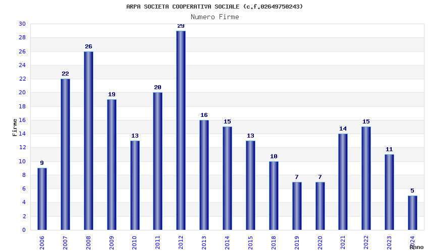 | Anno | Firme | Importi | Media | Naz. | Reg. | Prov. | Comu. |
