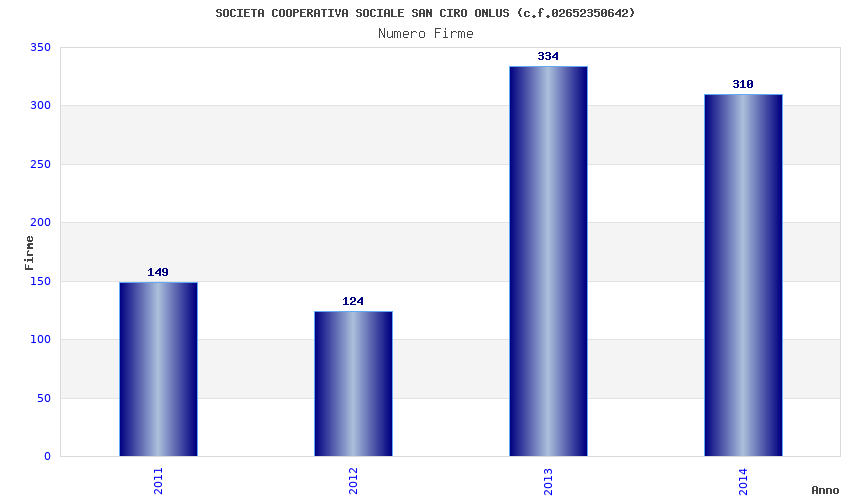 | Anno | Firme | Importi | Media | Naz. | Reg. | Prov. | Comu. |
