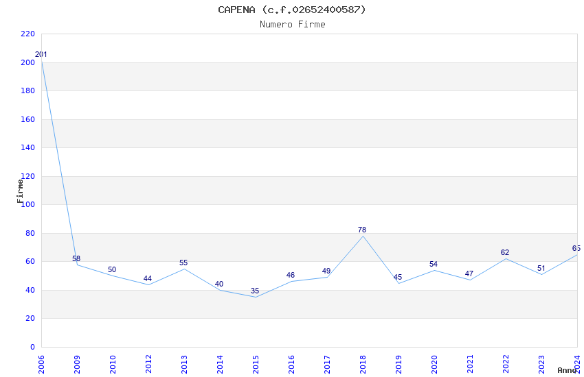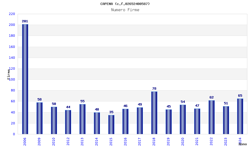 Anno Firme Importi Media Naz. Reg. Prov. Comu.