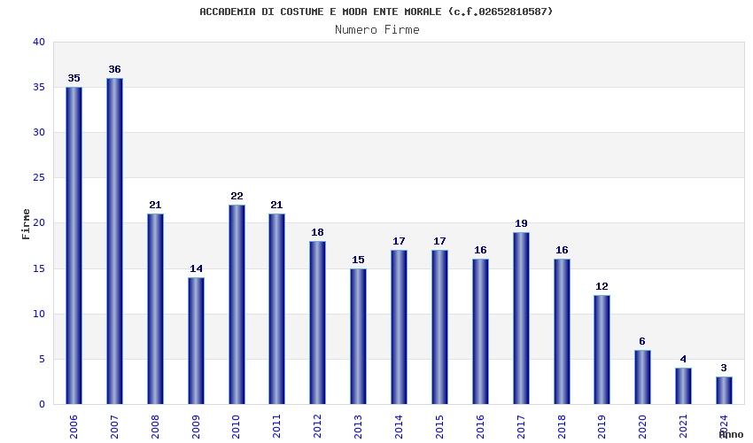 | Anno | Firme | Importi | Media | Naz. | Reg. | Prov. | Comu. |
