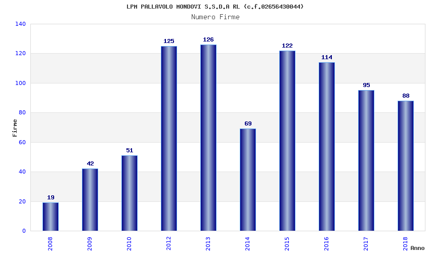 | Anno | Firme | Importi | Media | Naz. | Reg. | Prov. | Comu. |