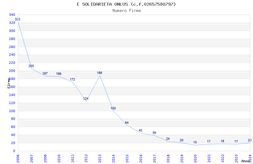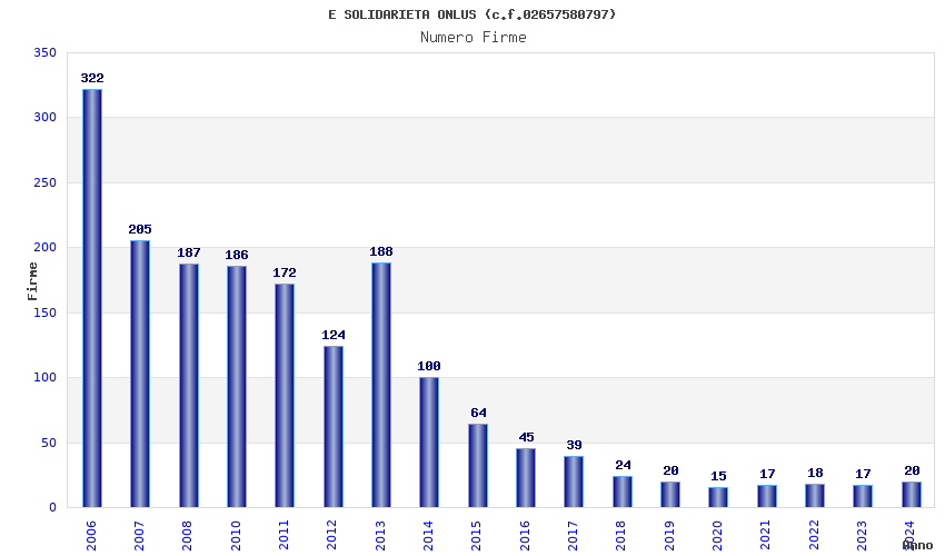 | Anno | Firme | Importi | Media | Naz. | Reg. | Prov. | Comu. |