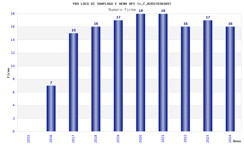 | 2018 | 16 | 383,55 | 23,97 | 48.180 | 1.408 | 624 | 3 |