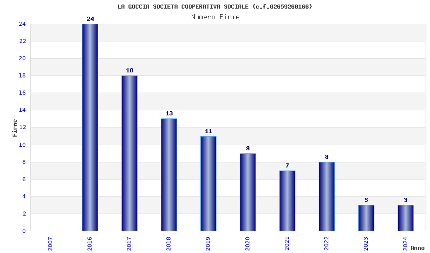 | Anno | Firme | Importi | Media | Naz. | Reg. | Prov. | Comu. |