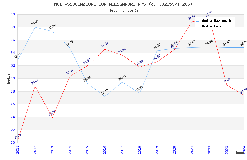 | Anno | Firme | Importi | Media | Naz. | Reg. | Prov. | Comu. |