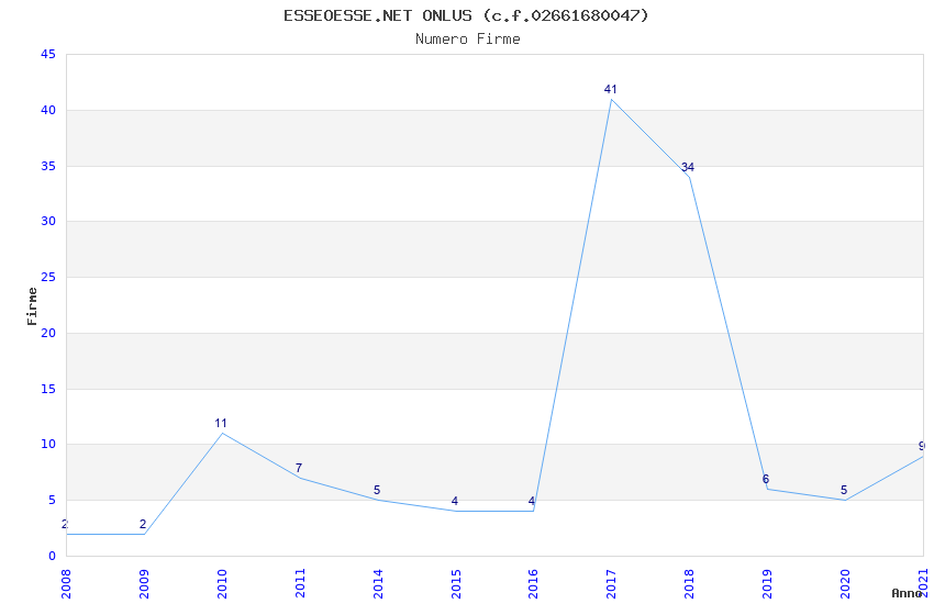 | 2017 | 41 | 801,06 | 19,54 | 37.753 | 3.249 | 535 | 84 |